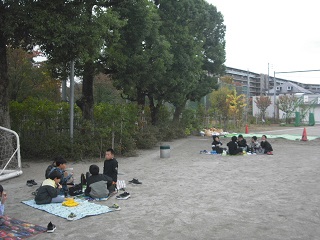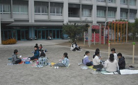 【4年生】校庭でお弁当をいただきました。