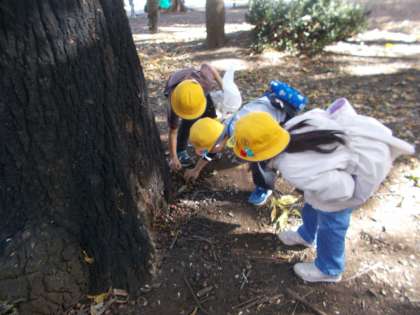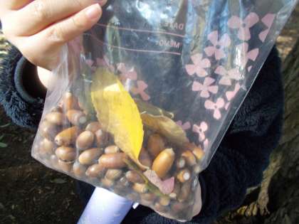 学校に戻ってからは、見つけたどんぐりや落ち葉を使って絵を作るなど楽しく遊びました。