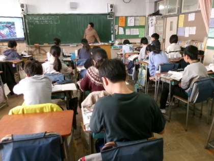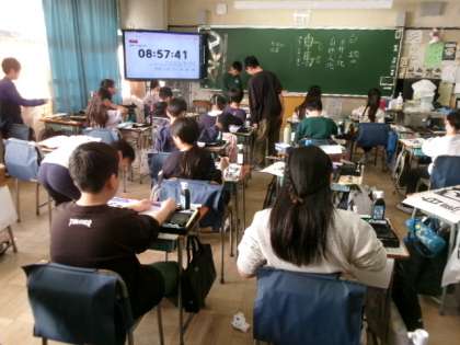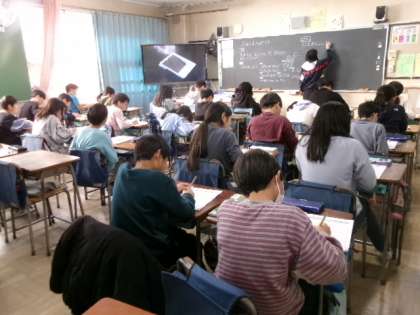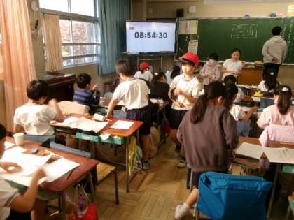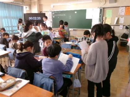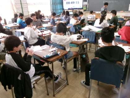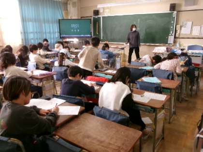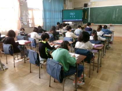 3年生のこの学級では、これまで学習した漢字を書きながら復習しています。みんな集中して書いています。