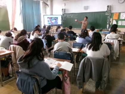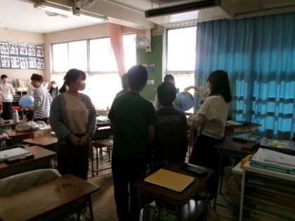 6年生の英語の時間には「I want go to Italy.」という単元で学習しています。地球儀のボールを使ったゲームをしながら、行きたい国を言う言い方に慣れているところです。