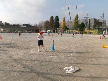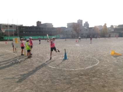 5年生は体育の時間に、ティーボールに取り組んできました。この時間には学級対抗で試合を行っています。