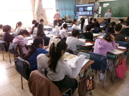 12月3日(水)の朝の時間は安全指導の時間です。この日は地震の際の避難について動画などから学びました。