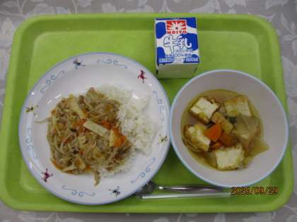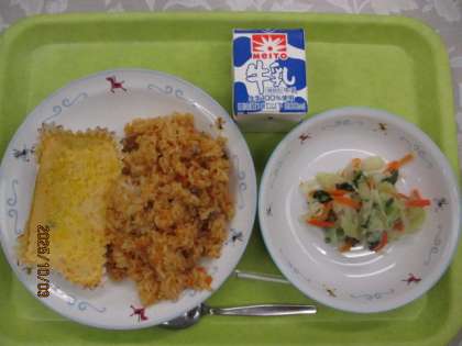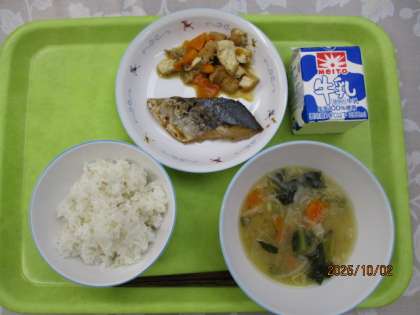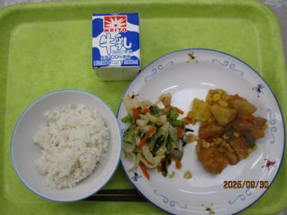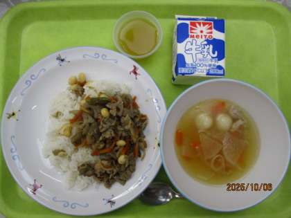 10月6日は、お月見です。中秋の名月とも呼ばれ、きれいな月を眺めながら、おだんごやすすきをお供えし、秋の収穫に感謝をする日でもあります。おだんごの入った月見だんご汁をだしました。デザートは、まんまるの月をイメージしたパインゼリーです。目でも楽しんで、いただきましょう。夜は雲のすきまから、きれいな月が見えるといいですね。