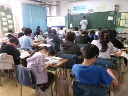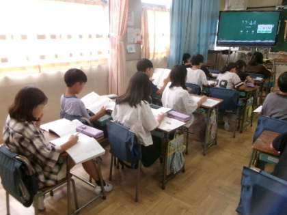 3年生の国語の時間には「ちいちゃんのかげおくり」という物語を読んでいます。初めに読んだ感想をノートに書いているところです。