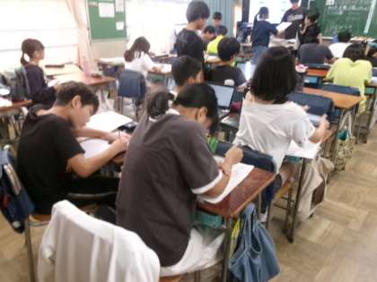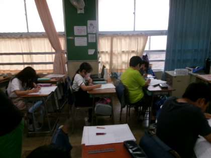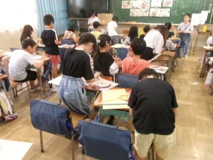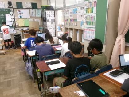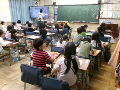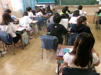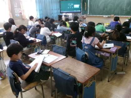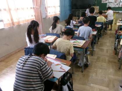 5年生は先日の移動教室の経験を新聞に表しています。下書きの後、清書に移っています。