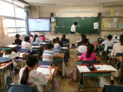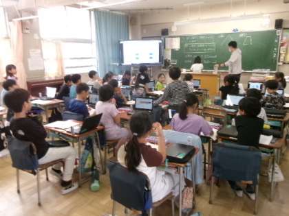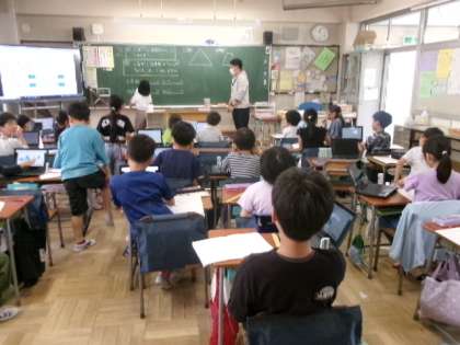 2年生の算数の時間には図形について学習しています。この時間には三角形と四角形の特徴を調べています。