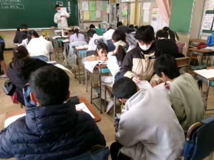 2年生の国語の時間には、おもちゃの作り方を説明する文章を書きます。メモを見ながら書き始めているところです。