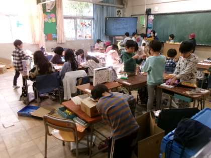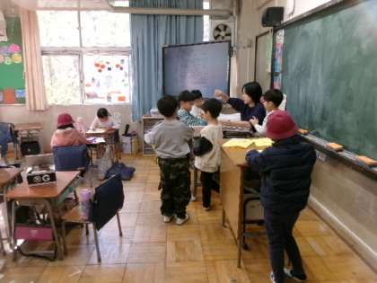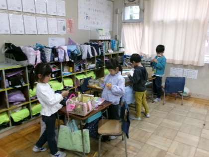1年生は各学級で秋祭りの準備をしています。だいぶ準備が整ってきたようです。