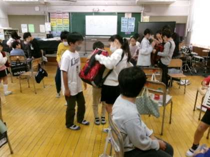 11月13日(木)の2校時には、避難訓練を行いました。緊急地震速報が鳴り、強い地震がが起きる想定で訓練をしました。どの学年も真剣に取り組むことができました。