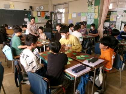 11月14日(金)の昼休みには、たてわり班遊びを行いました。前回は感染拡大防止のため実施できませんでしたが、この日は前回できなかった遊びを班ごとに楽しみました。