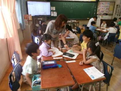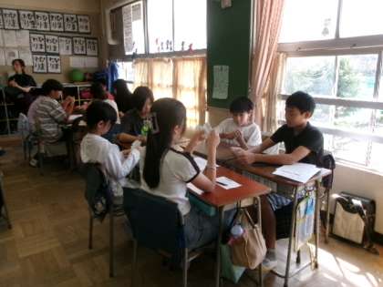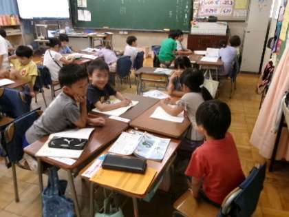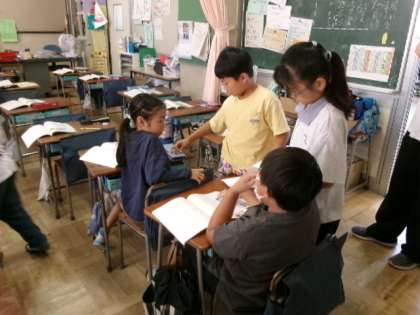 1年生の国語の時間には、数と漢字の学習をしています。いろいろな数え方について班で話し合っています。