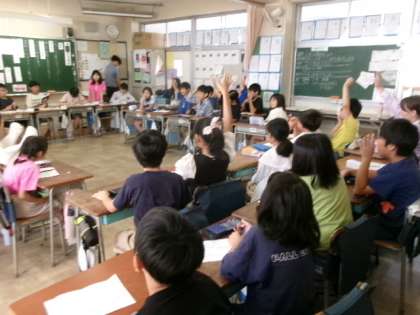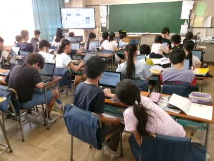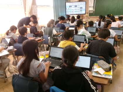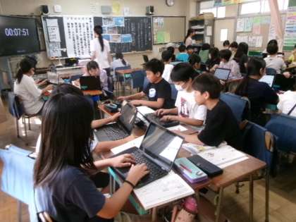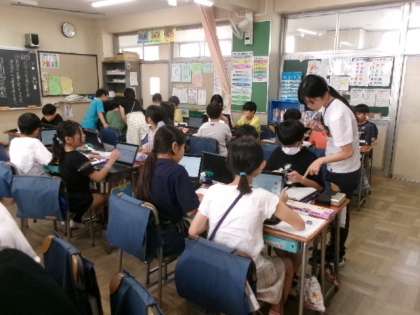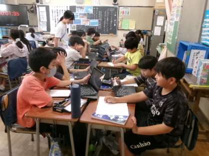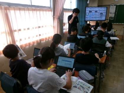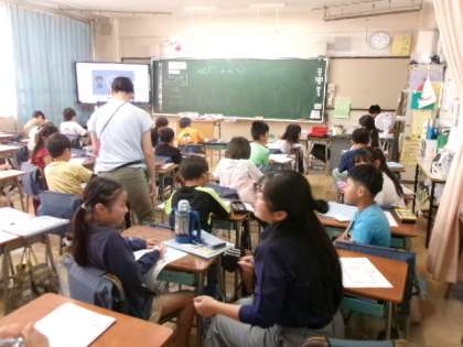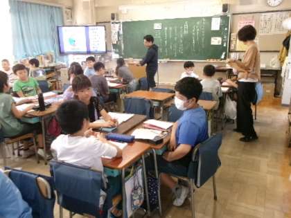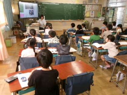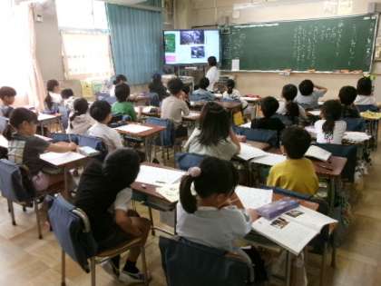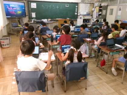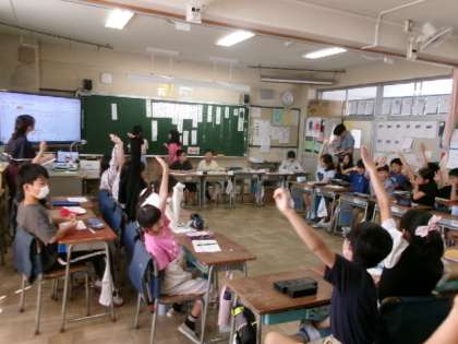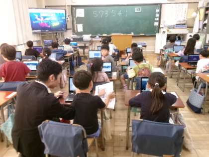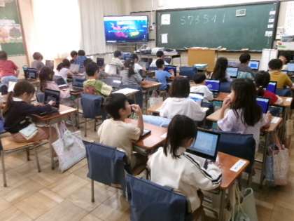 1年生もタブレットの使い方に少しずつ慣れてきました。この時間には、この後、みんなでクイズに挑戦しました。