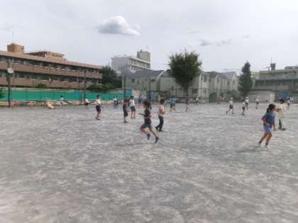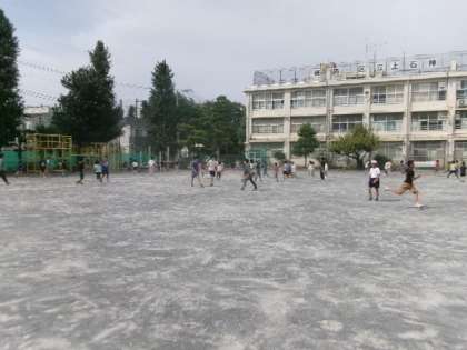 昼休みの校庭の様子です。過ごしやすい気候になってきて、昼の時間になっても校庭で遊べるありがたさを改めて実感しています。