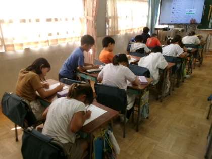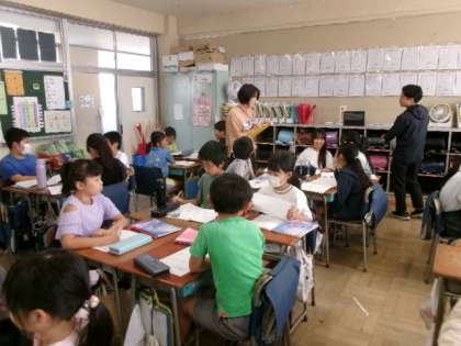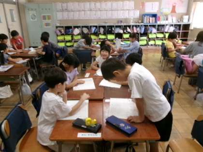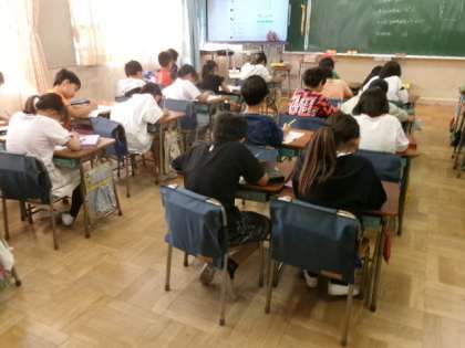 3年生の国語の時間には、ローマ字について学習しています。ワークシートに一文字ずつ集中して書いています。