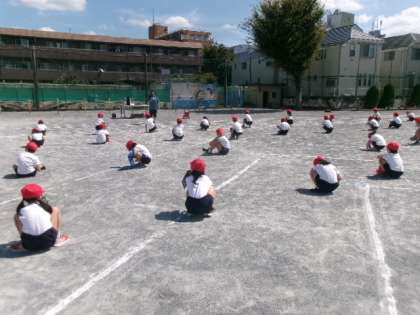 今週から上小スポーツフェスティバルに向けた特別時間割が始まっています。2年生も校庭に出て、表現の立ち位置の確認などを行っています。