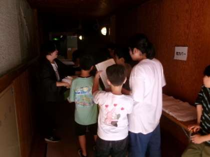 2日目の最後は肝試しです。写真は終わってほっと一息しているところです。