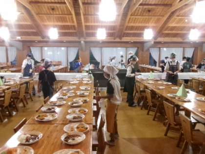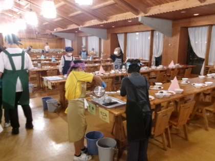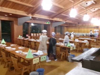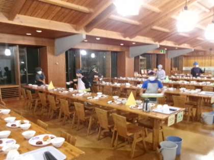 2日目の夕食準備です。食事係の皆さんが手際よく活動できたので、少し早めに準備が完了しました。