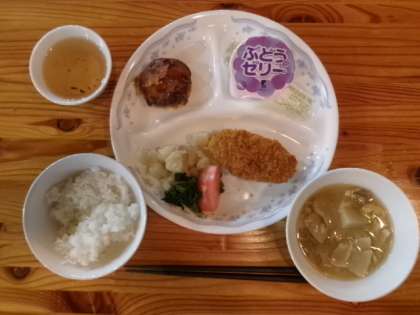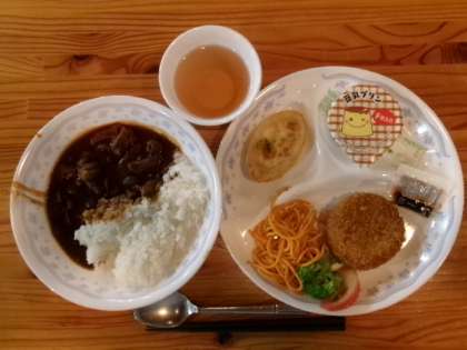 宿舎の食堂での初めての食事です。たくさんの子がハッシュドビーフをおかわりしていました。