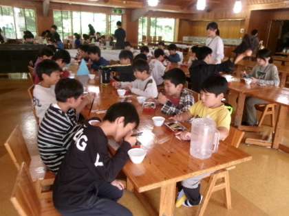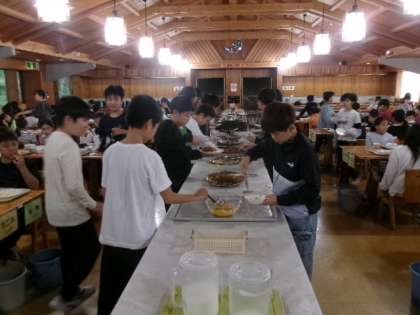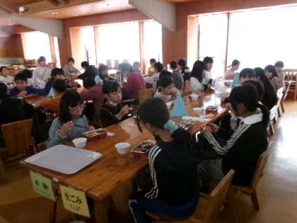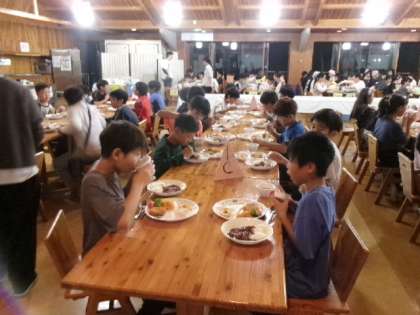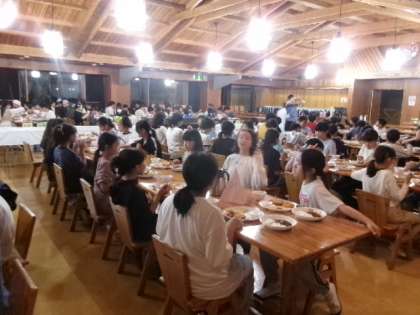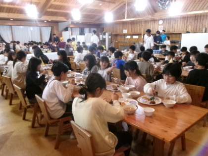 宿舎での最後の夕食です。一日の活動を振り返りながら味わっていただきました。