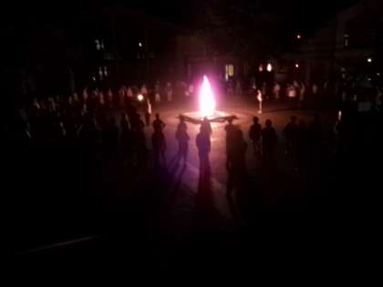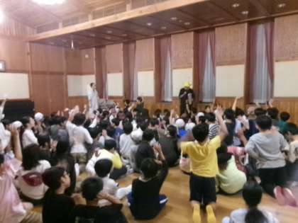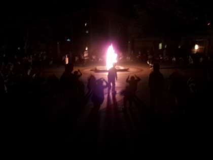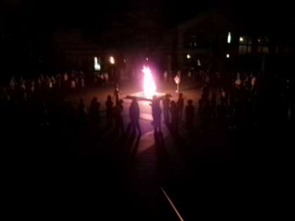1日目のしめくくりは、キャンプファイヤーです。キャンプファイヤー係の皆さんが中心になって5年生全員が一体となって盛り上がりました。