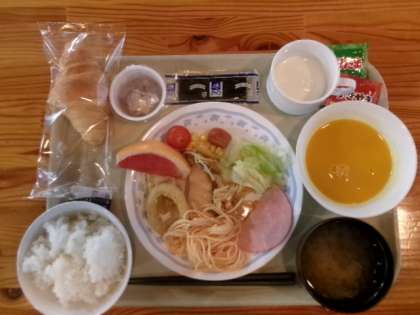 宿舎で最後の食事です。今朝もバイキング方式です。今朝は揚げ物が子供達には人気がありました。