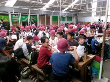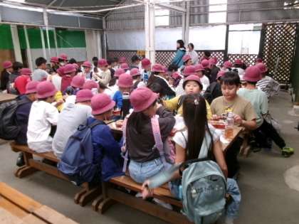 この移動教室の最後の食事です。群馬サファリパークの休憩所でいなり寿司弁当をおいしくいただきました。後は、帰路につくだけです。
