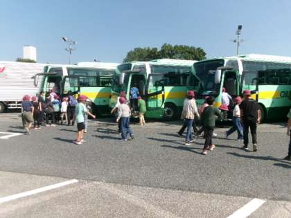 9月17日(水)から2泊3日で、5年生は軽井沢移動教室に行きます。夏を思わせる好天の下、校庭で出発式をしてからバスに乗り込みます。元気に行ってまいります。