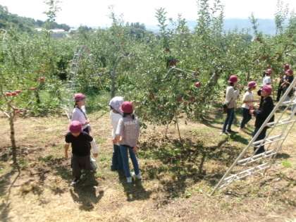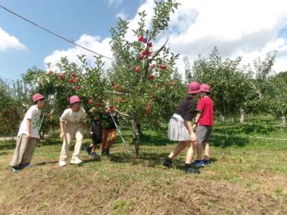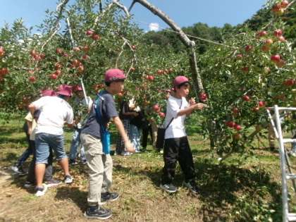 一日目最初の体験場所は、りんご農園です。農家の方の説明を聞いた後、5,6種類のリンゴを食べ比べました。どのリンゴもおいしくいただきました。お弁当は食べられるでしょうか。