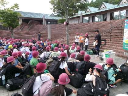 2泊3日お世話になるベルデ軽井沢に到着です。開校式をして、宿舎の皆様にご挨拶をしました。3日間よろしくおねがいします。