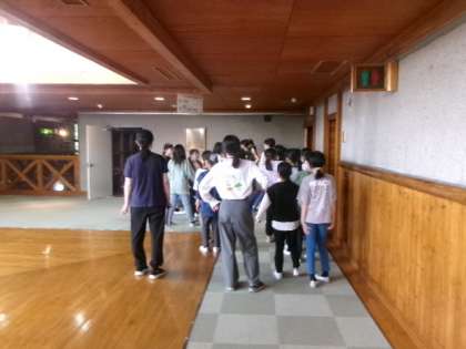 宿舎の部屋に入ったらすぐに避難訓練です。避難経路や宿舎内の主要な部屋の場所尾確かめました。