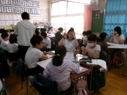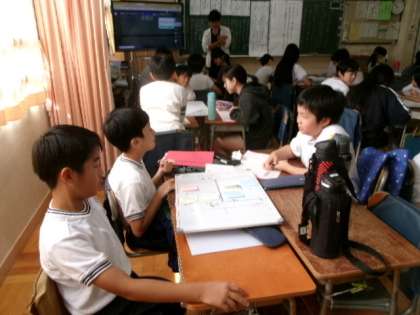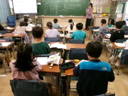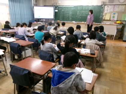 4年生は国語の時間に、「ごんぎつね」を読んだことを基に班で交流をしました。班の中でよく発表できた児童に投票し合った結果を発表しています。