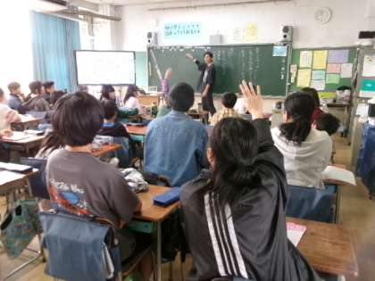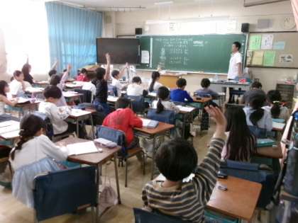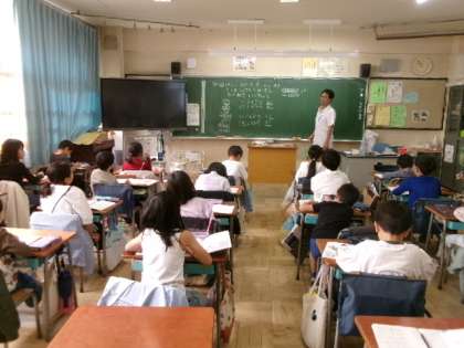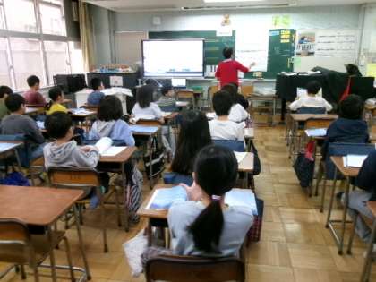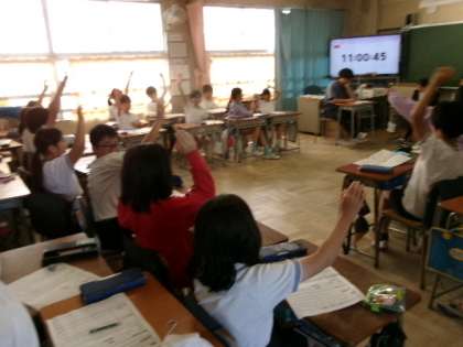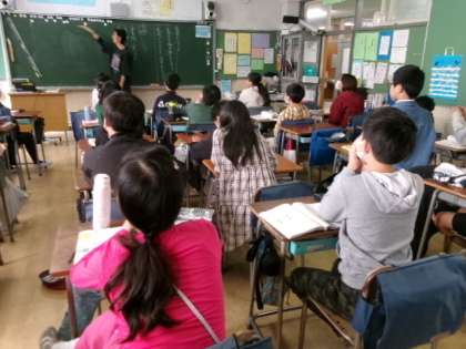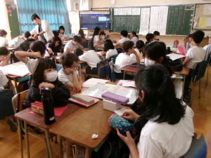 5年生の社会科の時間には、日本の工業生産と貿易・運輸について学習しています。学習課題を立てて学習の見通しをつかんでいるところです。