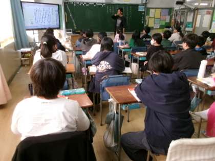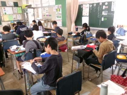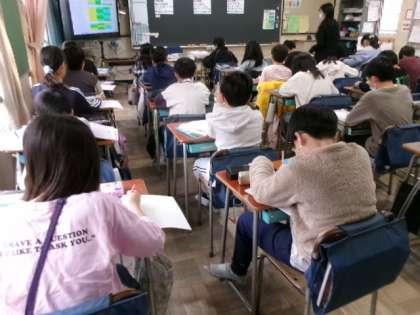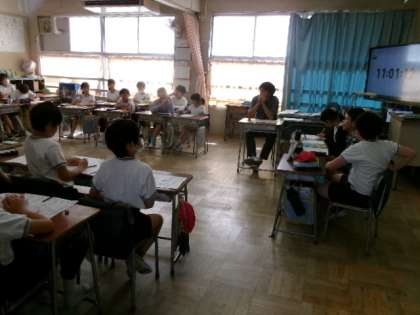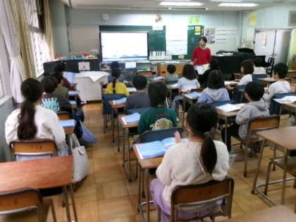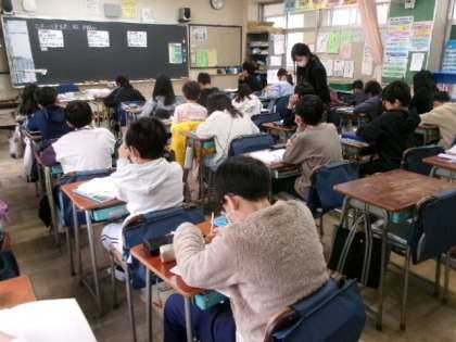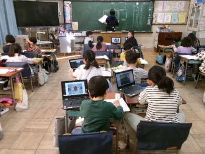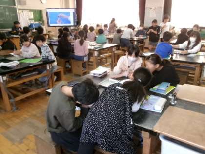 3年生の音楽の時間には「ふじ山」という曲に取り組んでいます。録音を聞きながら試しに歌っているところです。
