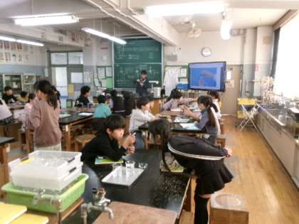 4年生の理科の時間には、物の体積と温度について学習しています。今回は理科室で実験をしています。