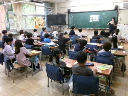 1年生の国語の時間には漢字の学習もしています。この時間には漢字の成り立ちについて学んでいます。