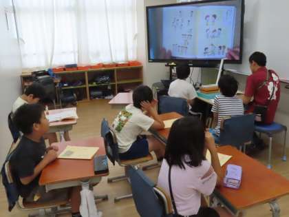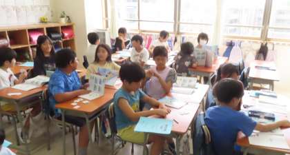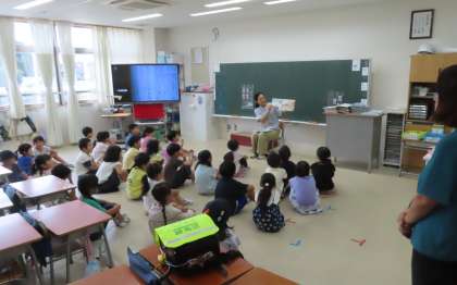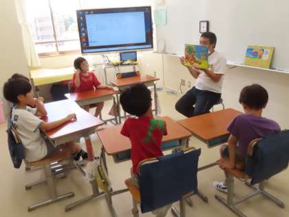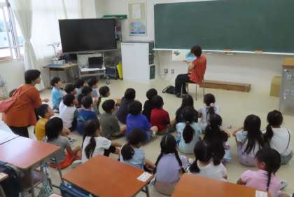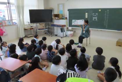 今日も、読み聞かせボランティアの方々が、子供たちを絵本の世界に招いてくださっています。子供たちはニコニコです。