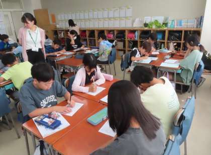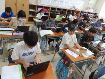 移動教室で学んだこと、感じたことをパンフレットにまとめます。どの感動を読み手に伝えようか、どう工夫しようか、考えています。