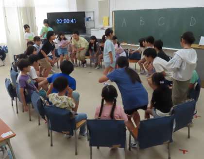 大迫力の「だるまさんが転んだ」、盛り上がっています。教室でも、広さに合わせて工夫して遊んでいます。6年生、計画と進行、ご苦労様!