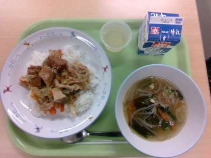 3年生は国語で「すがたをかえる大豆」を学習しています。今月は給食でも大豆や大豆製品を献立に多く取り入れています。今日の家常豆腐丼には、厚揚げを使いました。