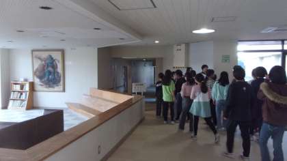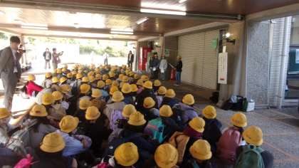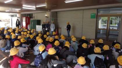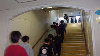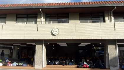 宿舎の避難経路と食堂の入り方、水筒の出し方などの確認をしました。また、体育館と浴室などの行き方も確認しました。