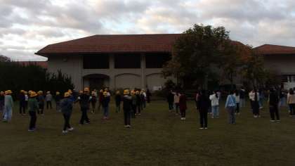 18時、予定通り行うことができ、楽しく過ごすことができました。夕食をおいしくいただきました。この後はキャンドルファイヤーを体育館で行います。