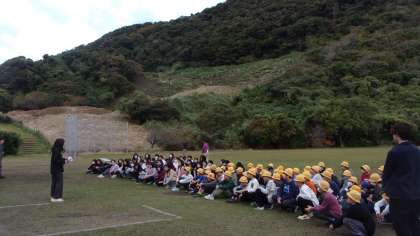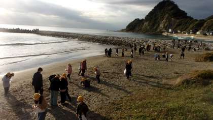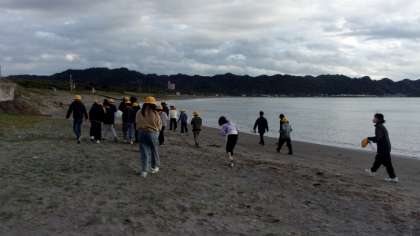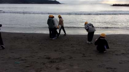 14時45分、岩井海岸に到着。クラスごとに岩井海岸を散策しました。貝殻を拾ったりしながら砂浜を友達と歩き、海の自然に触れることができました。