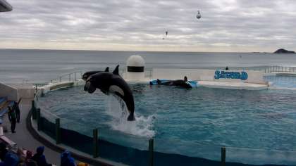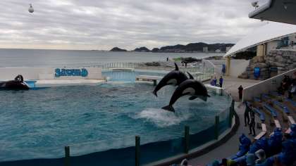 シャチなどのショーを見学しました。ダイナミックなシャチの動きや水しぶきに大歓声があがりました。