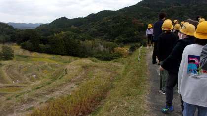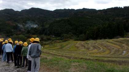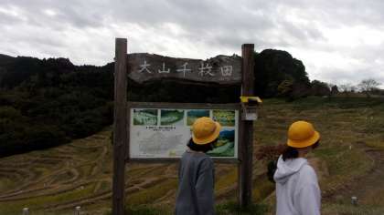 13時45分、大山千枚田に到着。階段のように連なる大小375枚の田んぼがあります。東京から一番近い棚田として知られています。素晴らしい景色に感動しました。