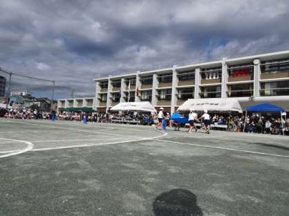 赤白の勝敗を決する最後の演技は、5・6年選抜選手による高学年リレーです。選抜といってもバトンパスの練習は限られた時間の中で行っていて最初はなかなかうまくつながりません。でも、本番では全員のバトンがうまくつながりました。必死に手を伸ばし後ろから来るバトンを信じ受け取る姿には胸が熱くなります。最後まで4チームとも頑張って走り抜きました!