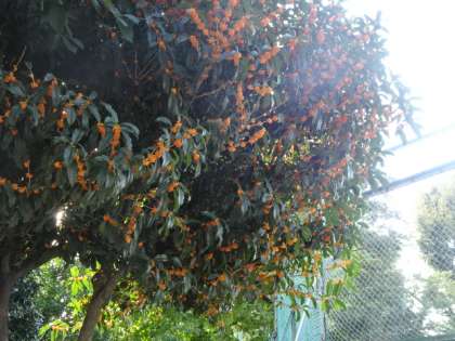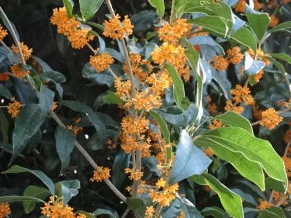 運動会にお越しの際は、校庭のキンモクセイの香りを感じてください。バックネット近くと校舎北側の生け垣にキンモクセイがあり今花を咲かしています。