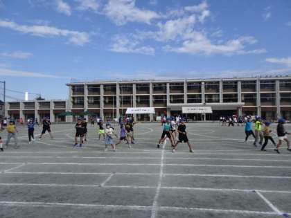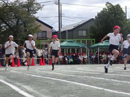 6年生の80メートル走。体が大きくなり、たくましい走りを見せてくれました!おうちの方に見ていただき、笑顔もたくさん見られました!