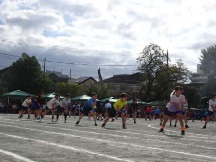 運動会の最初の種目、3年生。いよいよ運動会がスタートするという喜びが感じられる3年生のはつらつとした走りでした。たくさんの拍手が本当にうれしいです。
