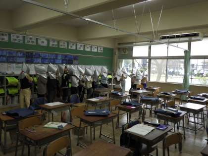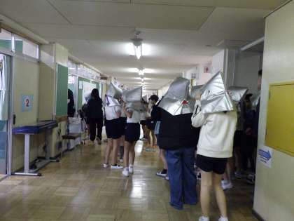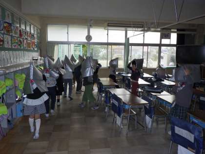 ・ししゃもの磯辺揚げ ・じゃがいものそぼろ煮 ・じゃこふりかけ ・牛乳 11月8日は「い(1)い(1)歯(8)」の語呂合わせから、「いい歯の日」といわれています。食事をおいしく食べるためには、歯の健康がとても大切です。健康な歯を保つために、よく噛んで食べることやカルシウムを摂ることを意識して欲しいと思います。 今日の給食では、ちりめんじゃこやししゃもなどを使い、噛み応えがありカルシウムが摂れるメニューにしました。 避難訓練