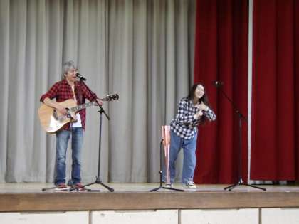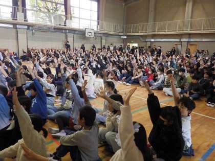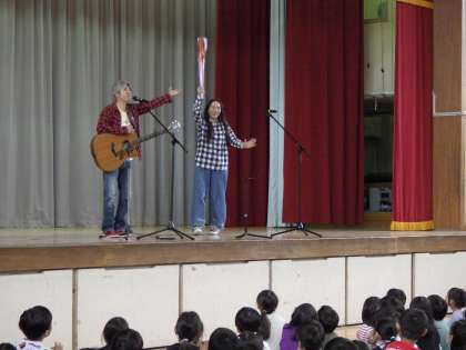 アツキヨは、路上ライブから誕生したアツシさん(男性)とキヨさん(女性)の2名ユニットです。キヨさんは、生まれつきの聴覚障害があり、ほとんど音が聞こえないそうですが、小さい時からの夢だった「歌姫になりたい」という思いをあきらめずに活動を続けています。 手話を教えていただいて一緒に踊ったり、これまでの苦労について質問に答えていただいたり、そして、2人のパフォーマンスに感動したり。歌って踊って学んで楽しめるコンサートでした。 1年生 遠足・生活科見学